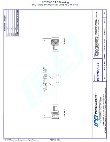PE37885 CAD Drawing TNC Male to BNC Male Cable Using PE-C195 Coax PE37885 REV 4