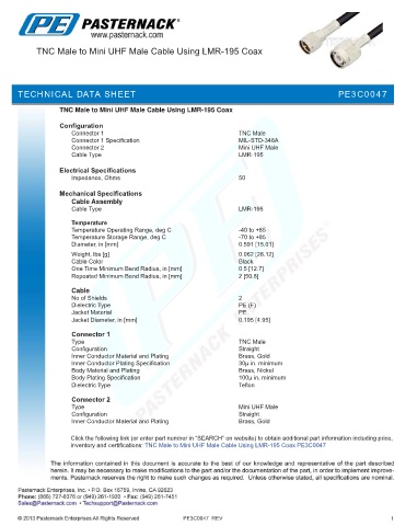 inventory and certifications: TNC Male to Mini UHF Male Cable Using LMR-195 Coax PE3C0047