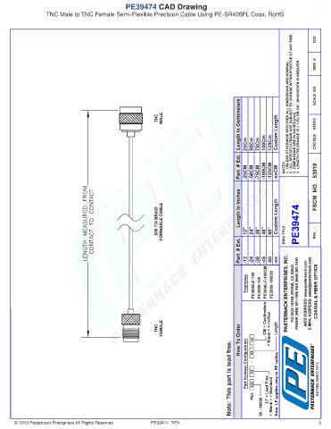 PE39474 CAD Drawing TNC Male to TNC Female Semi-Flexible Precision Cable Using PE-SR405FL Coax, RoHS © 2013 Pasternack Enterprises All Rights Reserved PE39474 REV 3