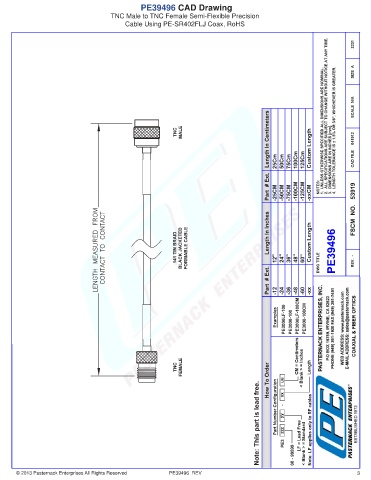 PE39496 CAD Drawing TNC Male to TNC Female Semi-Flexible Precision Cable Using PE-SR402FLJ Coax, RoHS © 2013 Pasternack Enterprises All Rights Reserved PE39496 REV 3