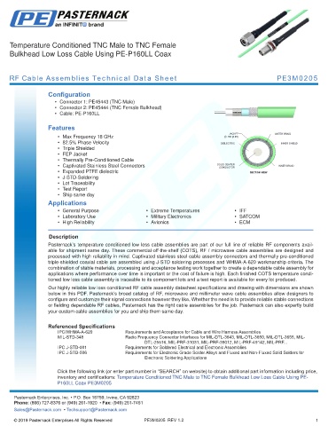 below in this PDF. Pasternack’s broad catalog of RF, microwave and millimeter wave cable assemblies allow designers to