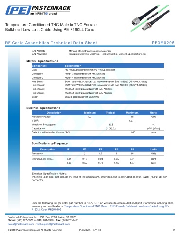 RF Cable Assemblies Technical Data Sheet PE3M0205
