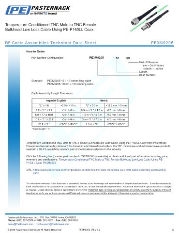 RF Cable Assemblies Technical Data Sheet PE3M0205