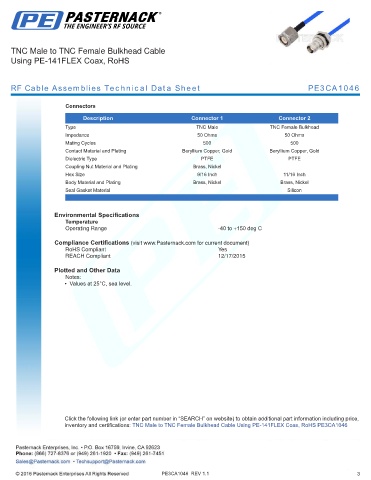 RF Cable Assemblies Technical Data Sheet PE3CA1046