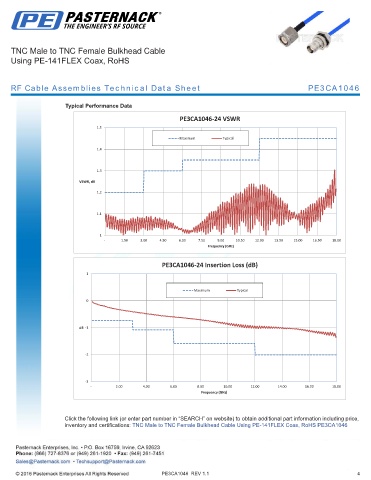 RF Cable Assemblies Technical Data Sheet PE3CA1046