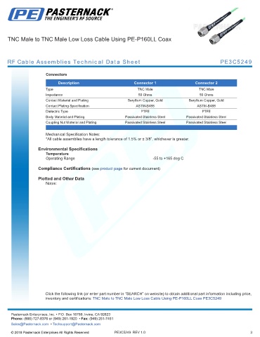 RF Cable Assemblies Technical Data Sheet PE3C5249