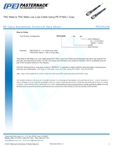 RF Cable Assemblies Technical Data Sheet PE3C5249