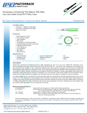 below in this PDF. Pasternack’s broad catalog of RF, microwave and millimeter wave cable assemblies allow designers to