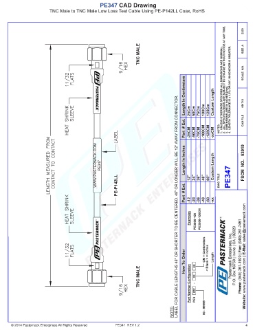 PE347 CAD Drawing TNC Male to TNC Male Low Loss Test Cable Using PE-P142LL Coax, RoHS © 2014 Pasternack Enterprises All Rights Reserved PE347 REV 1.2 4