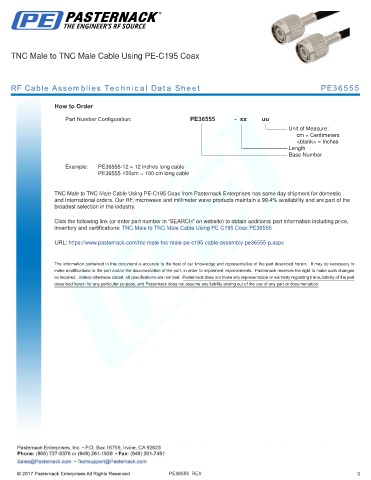 inventory and certifications: TNC Male to TNC Male Cable Using PE-C195 Coax PE36555