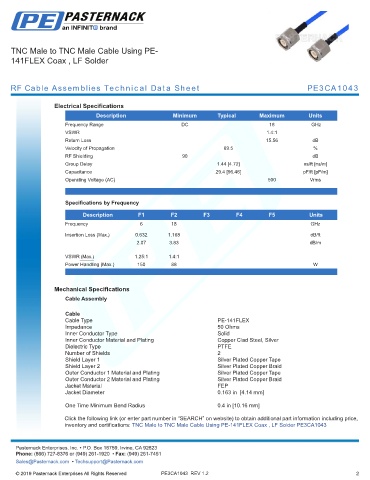 RF Cable Assemblies Technical Data Sheet PE3CA1043