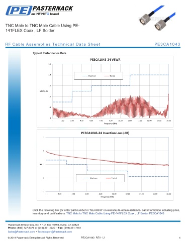 RF Cable Assemblies Technical Data Sheet PE3CA1043