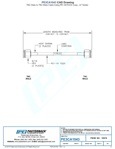 any representation or warranty regarding the suitability of the part described herein for any particular purpose, and Pasternack does not assume any liability arising out of the use of any part or documentation.