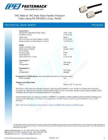inventory and certifications: TNC Male to TNC Male Semi-Flexible Precision Cable Using PE-SR402FLJ Coax, RoHS