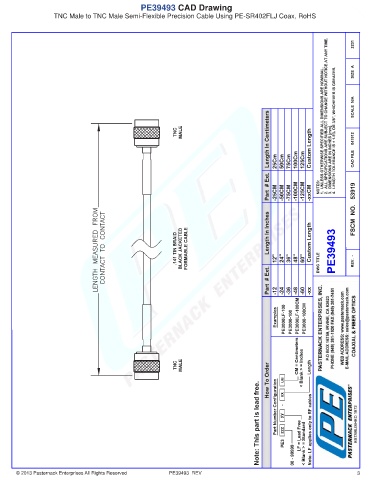 PE39493 CAD Drawing TNC Male to TNC Male Semi-Flexible Precision Cable Using PE-SR402FLJ Coax, RoHS © 2013 Pasternack Enterprises All Rights Reserved PE39493 REV 3