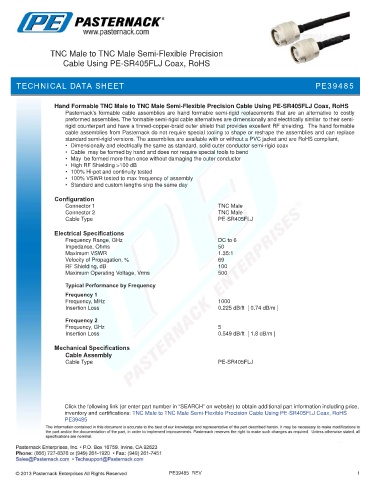 inventory and certifications: TNC Male to TNC Male Semi-Flexible Precision Cable Using PE-SR405FLJ Coax, RoHS