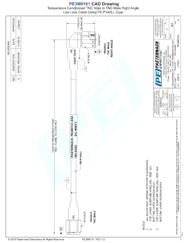 REVISIONS DATE 01/28/19 P2 CONTACT RP PE44812 TNC MALE RIGHT ANGLE PART NUMBER PE3M0161