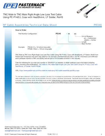 RF Cable Assemblies Technical Data Sheet PE346