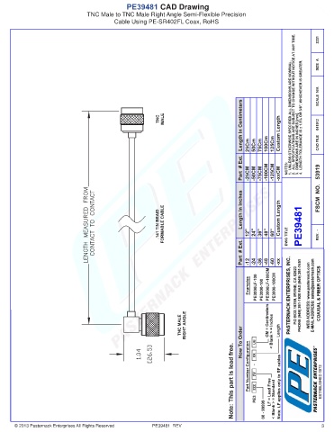 PE39481 CAD Drawing TNC Male to TNC Male Right Angle Semi-Flexible Precision Cable Using PE-SR402FL Coax, RoHS © 2013 Pasternack Enterprises All Rights Reserved PE39481 REV 3