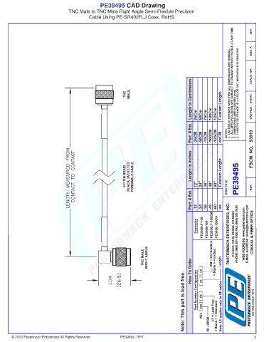PE39495 CAD Drawing TNC Male to TNC Male Right Angle Semi-Flexible Precision Cable Using PE-SR402FLJ Coax, RoHS © 2013 Pasternack Enterprises All Rights Reserved PE39495 REV 3