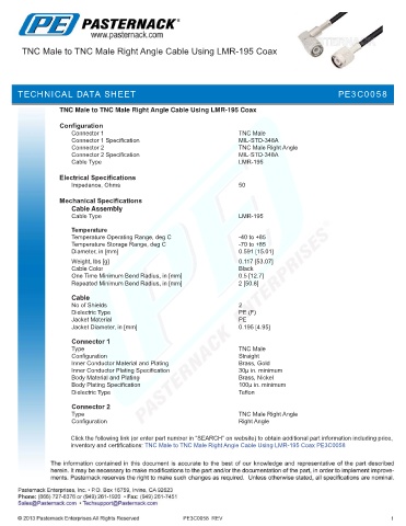 inventory and certifications: TNC Male to TNC Male Right Angle Cable Using LMR-195 Coax PE3C0058
