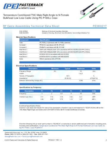 RF Cable Assemblies Technical Data Sheet PE3M0217