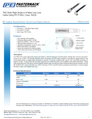 RF Cable Assemblies Technical Data Sheet PE3C1041