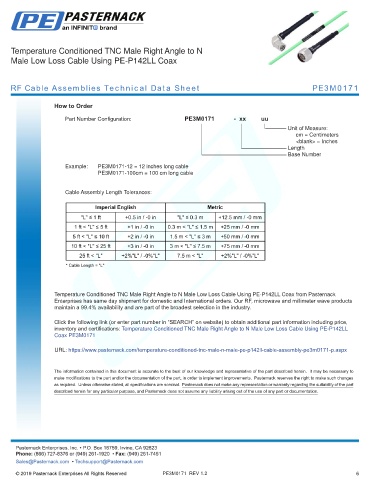 RF Cable Assemblies Technical Data Sheet PE3M0171