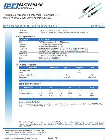 RF Cable Assemblies Technical Data Sheet PE3M0244