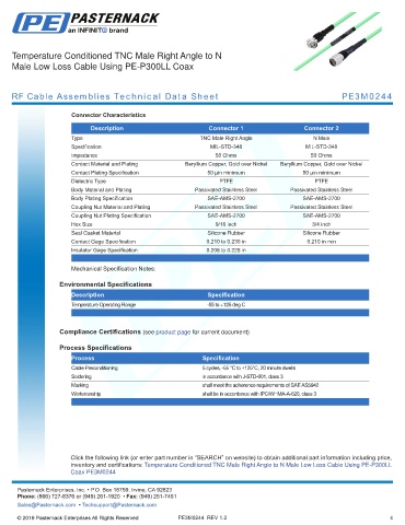 RF Cable Assemblies Technical Data Sheet PE3M0244