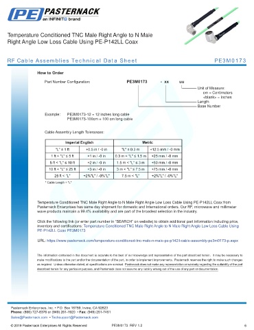 RF Cable Assemblies Technical Data Sheet PE3M0173