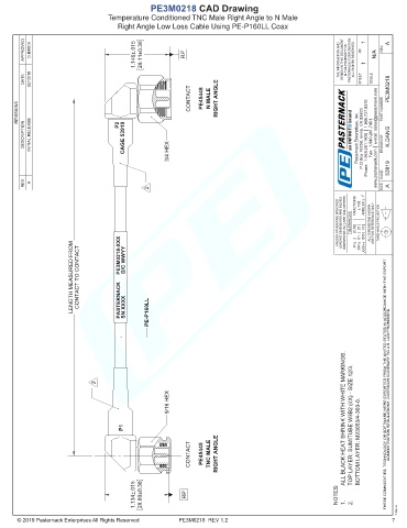 LENGTH MEASURED FROM CONTACT TO CONTACT PASTERNACK PE3M0218-XXX SN XXXX D/C WWYY PE-P160LL