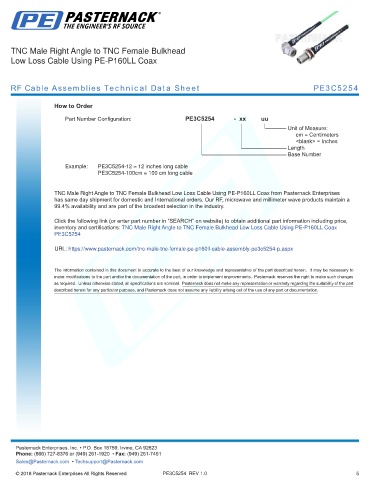 any representation or warranty regarding the suitability of the part described herein for any particular purpose, and Pasternack does not assume any liability arising out of the use of any part or documentation.