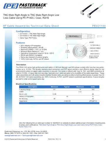 RF Cable Assemblies Technical Data Sheet PE3C1144