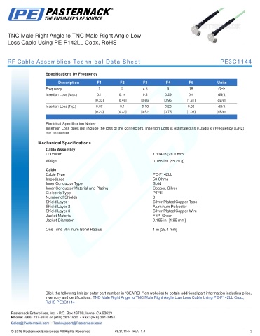 RF Cable Assemblies Technical Data Sheet PE3C1144