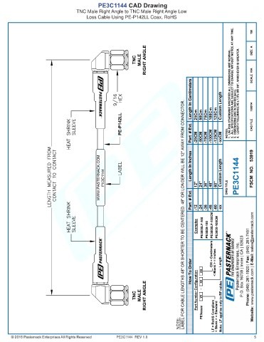 PE3C1144 CAD Drawing TNC Male Right Angle to TNC Male Right Angle Low Loss Cable Using PE-P142LL Coax, RoHS PE3C1144 REV 1.0 5