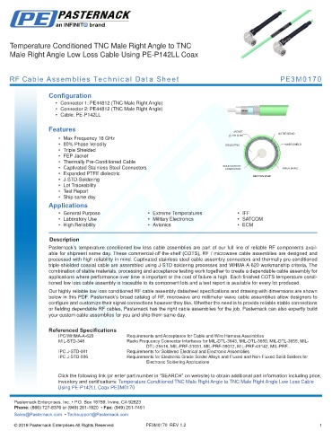 below in this PDF. Pasternack’s broad catalog of RF, microwave and millimeter wave cable assemblies allow designers to