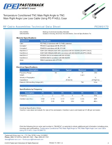 RF Cable Assemblies Technical Data Sheet PE3M0170