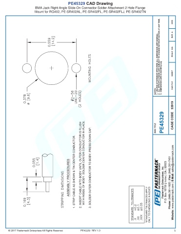 PE45329 CAD Drawing BMA Jack Right Angle Slide-On Connector Solder Attachment 2 Hole Flange Mount for RG402, PE-SR402AL, PE-SR402FL, PE-SR402FLJ, PE-SR402TN PE45329 REV 1.0 5