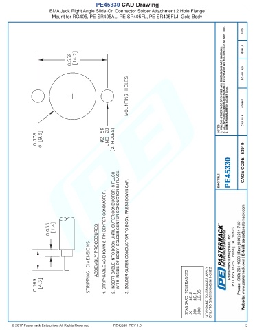 PE45330 CAD Drawing BMA Jack Right Angle Slide-On Connector Solder Attachment 2 Hole Flange Mount for RG405, PE-SR405AL, PE-SR405FL, PE-SR405FLJ, Gold Body PE45330 REV 1.0 5