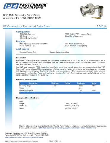 RF Connectors Technical Data Sheet PE4018