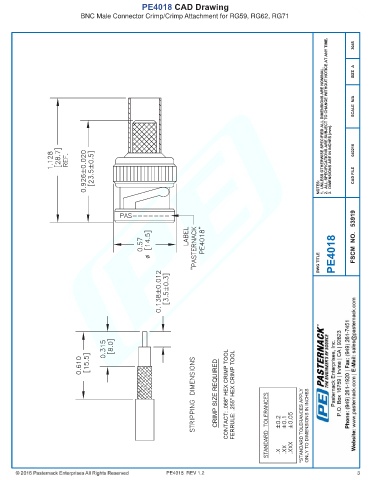 PE4018 CAD Drawing BNC Male Connector Crimp/Crimp Attachment for RG59, RG62, RG71 PE4018 REV 1.2 3