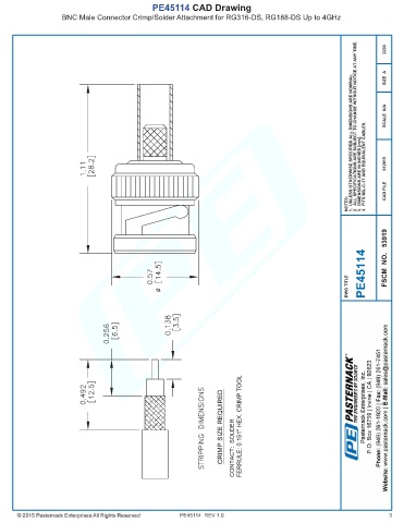 PE45114 CAD Drawing BNC Male Connector Crimp/Solder Attachment for RG316-DS, RG188-DS Up to 4GHz PE45114 REV 1.0 3