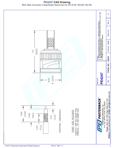 PE4247 CAD Drawing BNC Male Connector Crimp/Solder Attachment for PE-B150, RG180, RG195 PE4247 REV 1.4 3