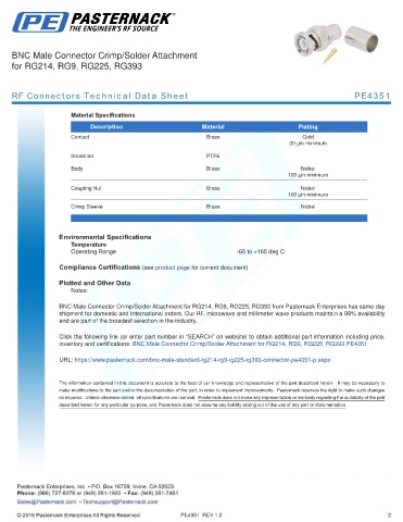 RF Connectors Technical Data Sheet PE4351