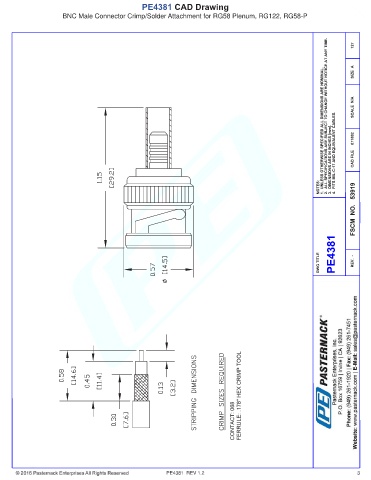 PE4381 CAD Drawing BNC Male Connector Crimp/Solder Attachment for RG58 Plenum, RG122, RG58-P PE4381 REV 1.2 3