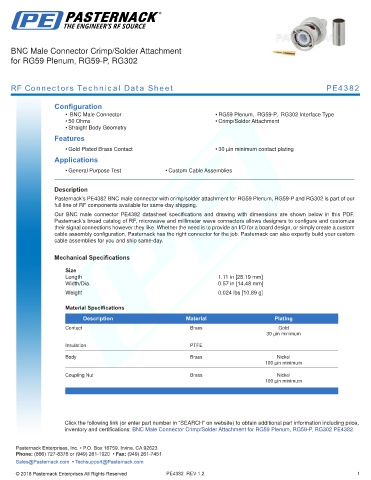 Our BNC male connector PE4382 datasheet specifications and drawing with dimensions are shown below in this PDF.