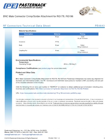 inventory and certifications: BNC Male Connector Crimp/Solder Attachment for RG178, RG196 PE4643