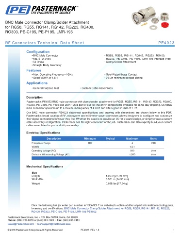 RF Connectors Technical Data Sheet PE4023