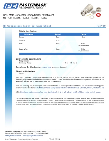 inventory and certifications: BNC Male Connector Clamp/Solder Attachment for RG8, RG215, RG225, RG214, RG393 PE4109